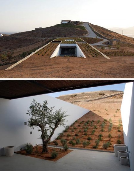 This rectangular structure was designed by Decar. It’s very eco-friendly, utilizing natural light and heat and cooling cross winds. It is built on the slopes of two adjacent hillsides. This house has a simple box like a plan that blends in the surrounding desert, while still incorporating the traditional Geek design elements. The house is only visible in the center and could pass for a half buried ruin more than a modern home. If you though this home was modern check out what we found out next!