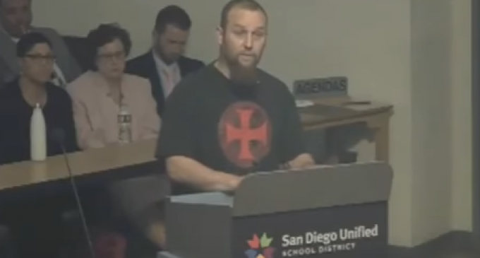 The effort has now reached a boiling point and the parents of America are fighting back.  One parent, Chris Wyrick of San Diego, California noted that his son was being forced to study pro-Allah material at his elementary school and took umbrage with that fact.  He wrote an impassioned speech and took to the podium of the school board .