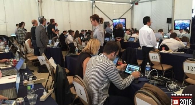 While the National Anthem played at the beginning of the GOP presidential primary debate, most reporters did not stand to honor the flag.