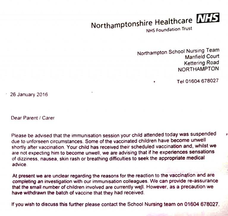 The letter blamed “unforeseen circumstances” for the complications, and advised parents to monitor their child’s health, specifically looking for signs of dizziness, nausea or skin rash: